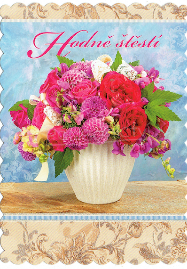 Pohlednice Hodně štěstí květina, text
