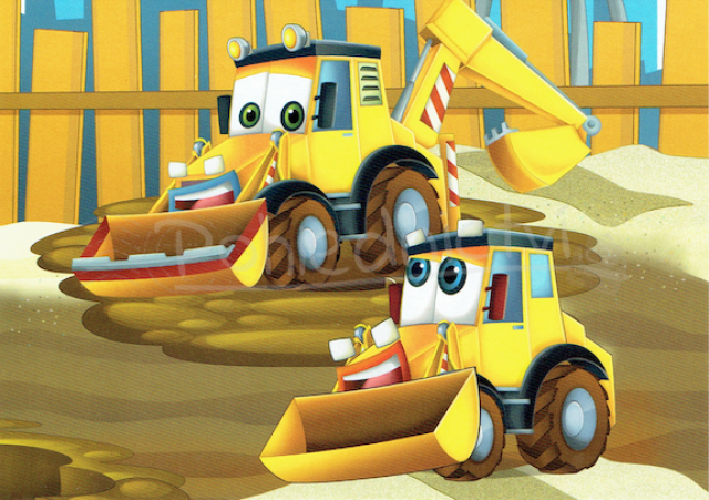 - Pohlednice Malované pracovní auta, bagr a traktor