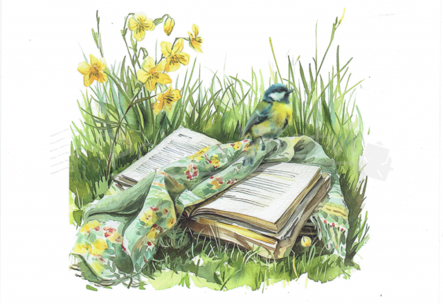 Pohlednice Sýkorka s knihou
